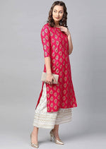 Vamika Pink Printed Rayon Party And Casual Wear Kurta Set