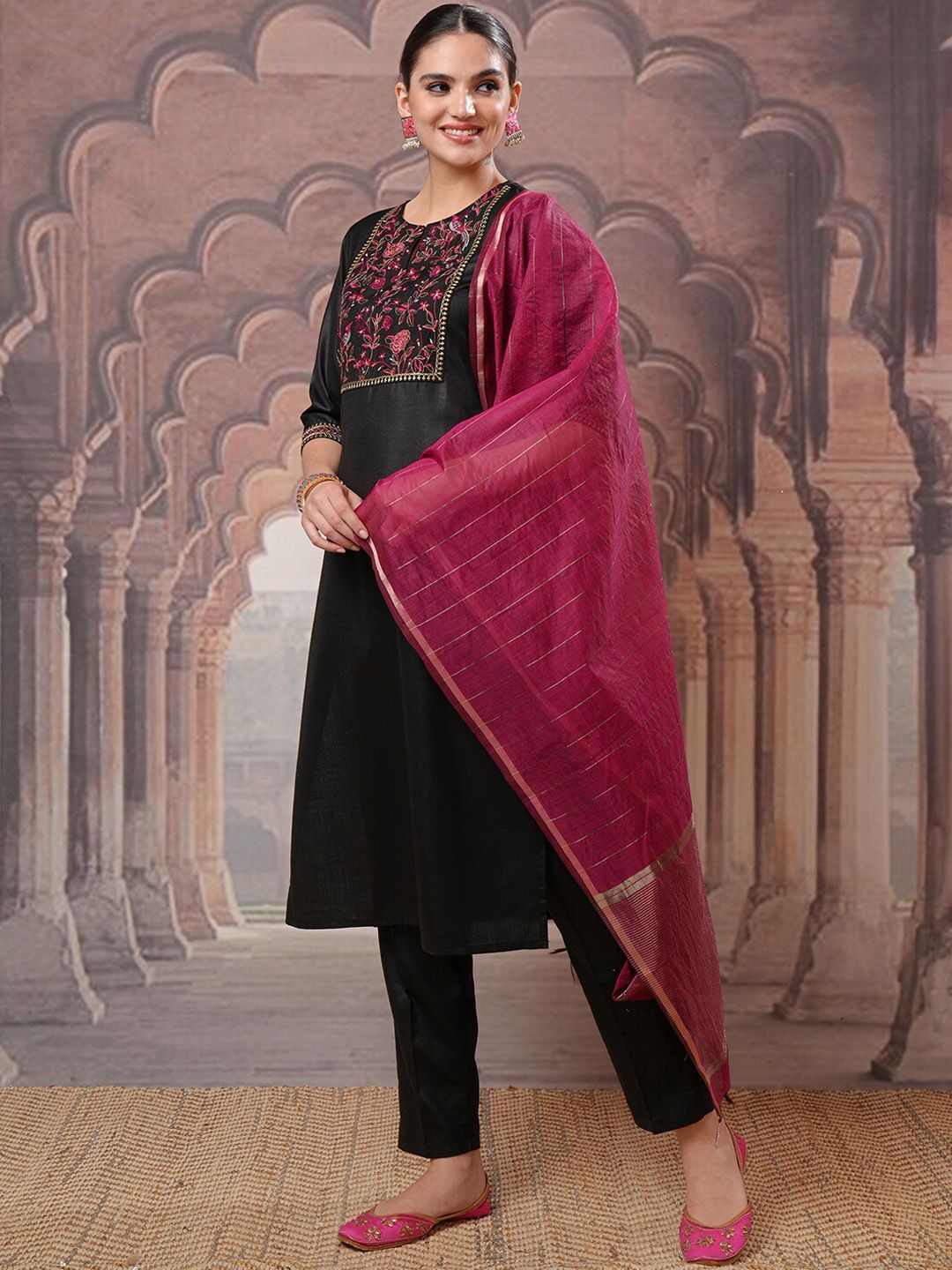 Black yoke design Kurta with Trouser & dupatta