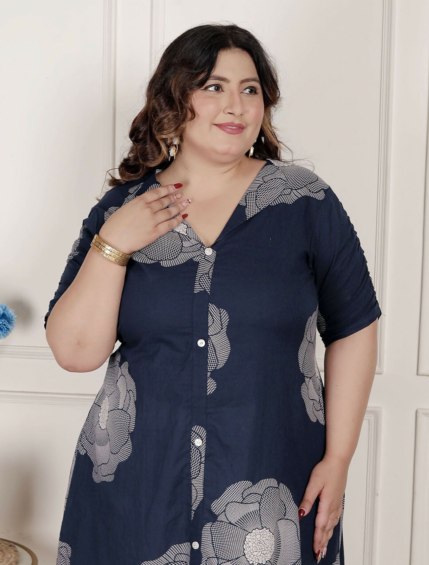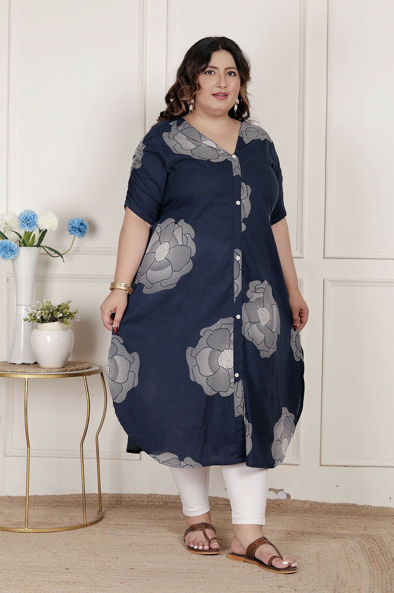 Miravan Womens Plus Size Blue Floral Printed Front Buttoned A-Line Kurta DressAbout The productElevate your everyday look with the Miravan Womens B...