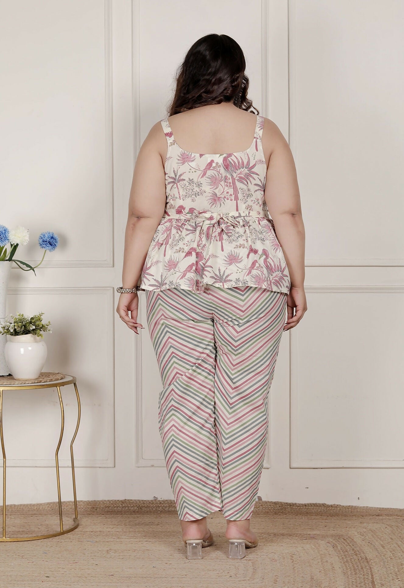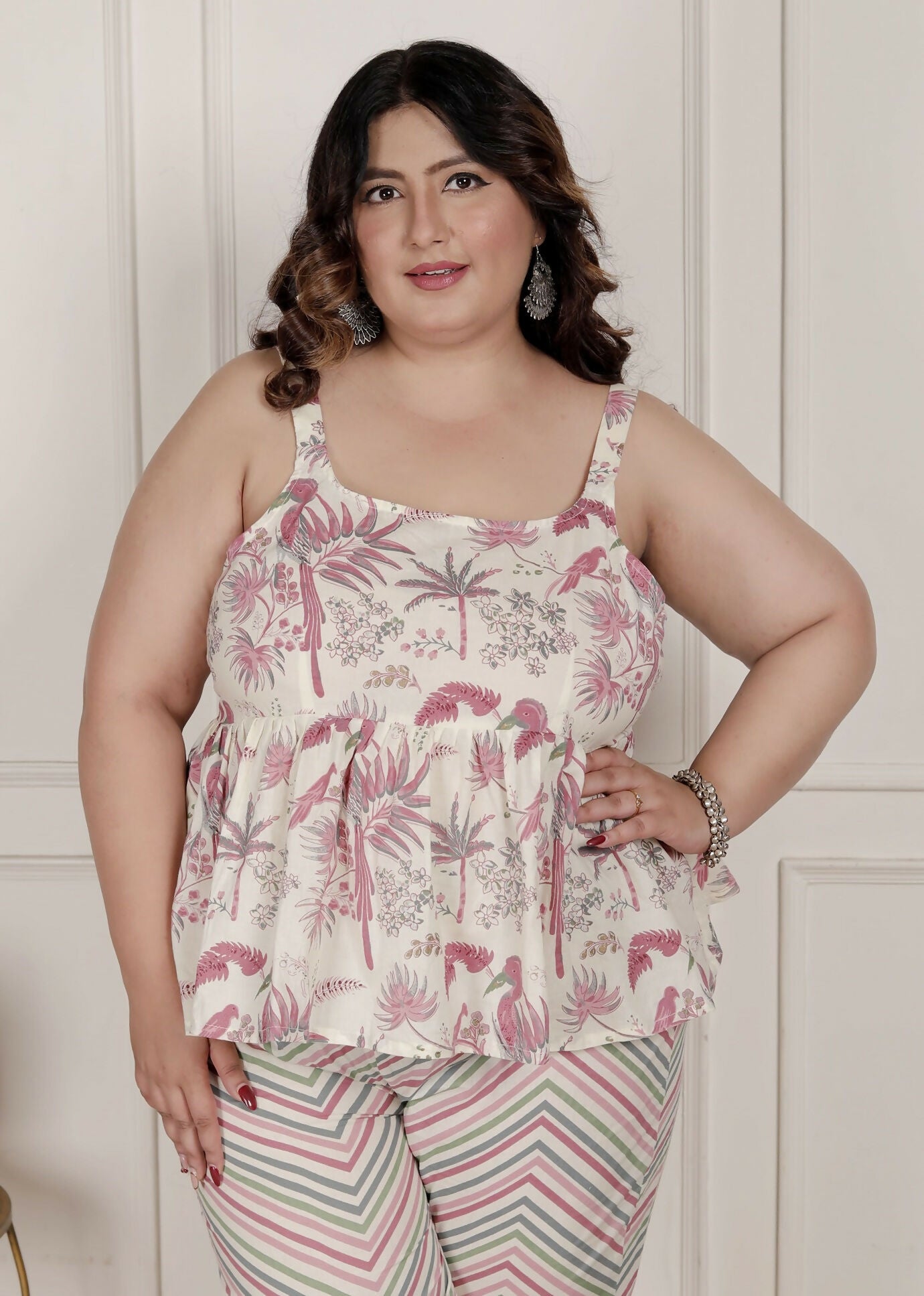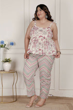 Miravan Womens Plus Size Pink Pure Cotton Leaf Printed Kurti With PalazzoAbout The productThe perfect mix of elegance and fun, the Off White Pure C...