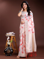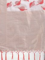Astita White & Red Cotton Woven Zari Work Traditional Tassel Saree