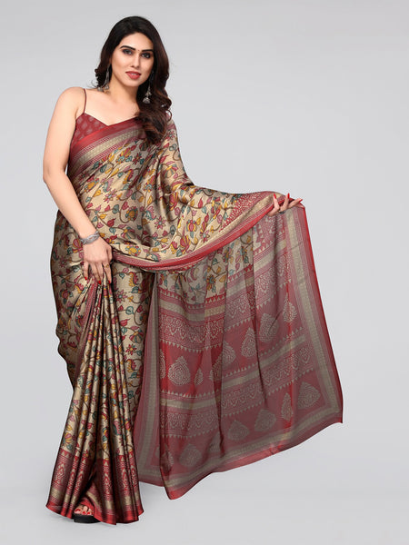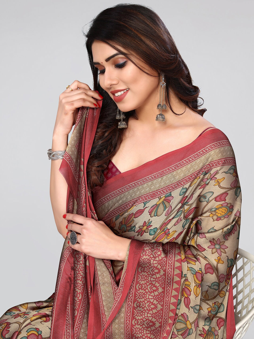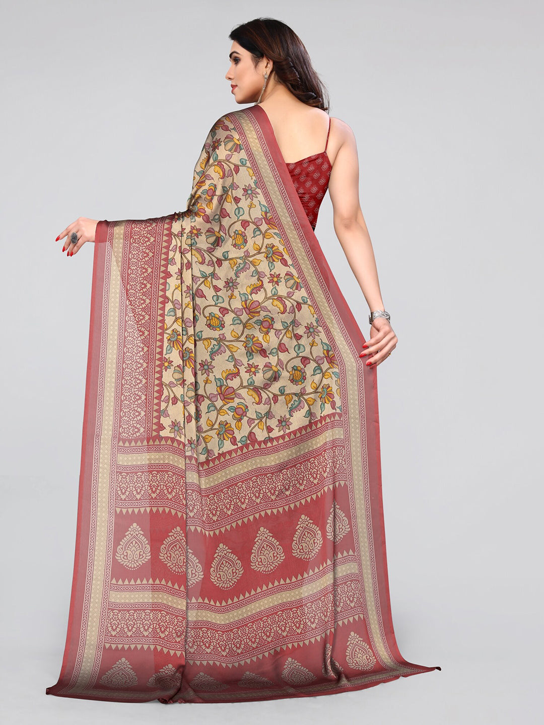 Kalini Floral Poly Chiffon Saree With Blouse Piece Product Details Design Details Rust and beige saree Floral printed saree with solid border ...