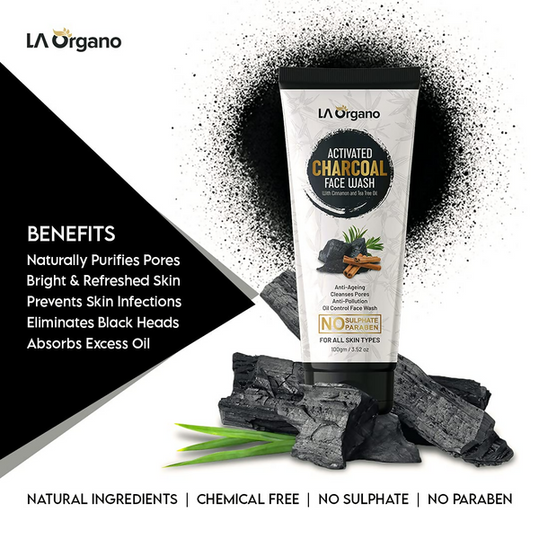 • LA Organo Activated Charcoal Face wash works Deeply to remove dirt, oil, impurities & pollution from the skin.