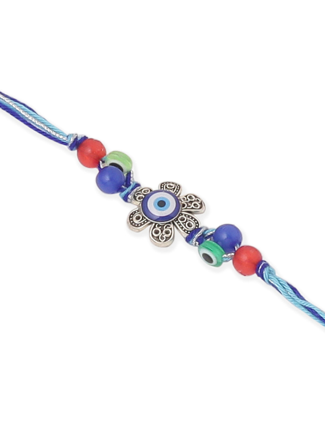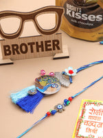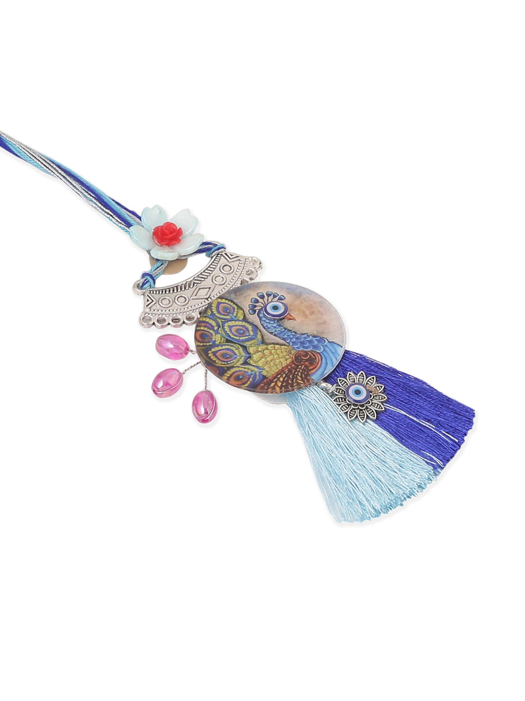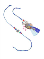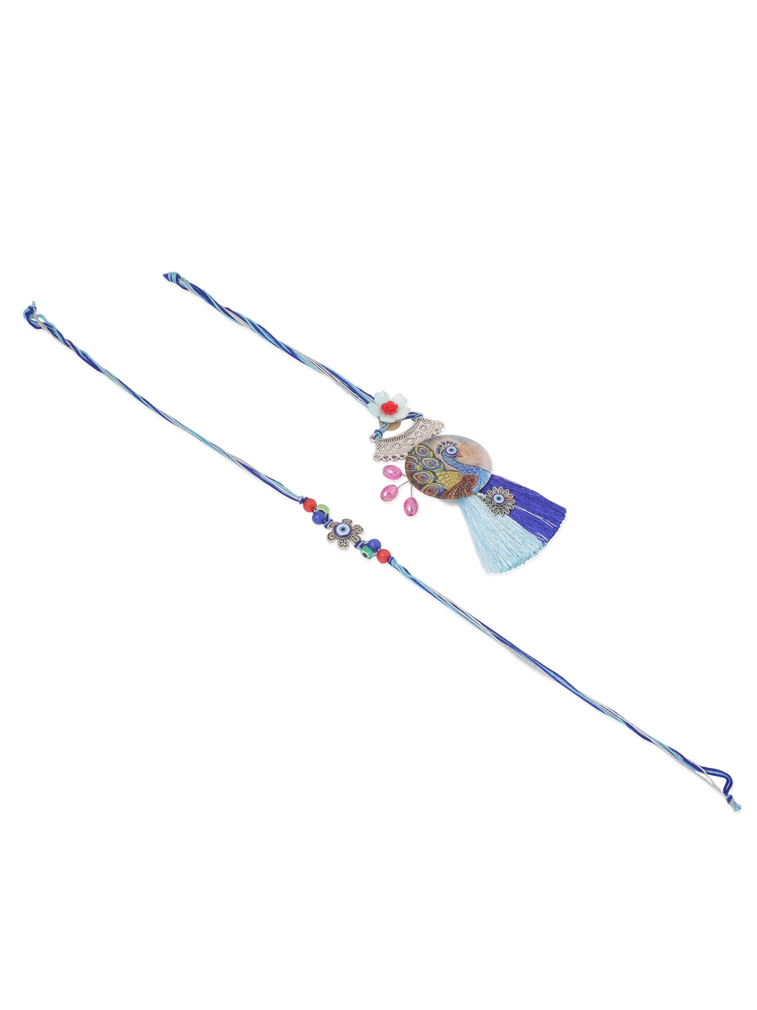 NVR Set of 2 Blue Evil Eye & Peacock Design Artificial Beads Bhaiya Bhabhi Rakhi Combo