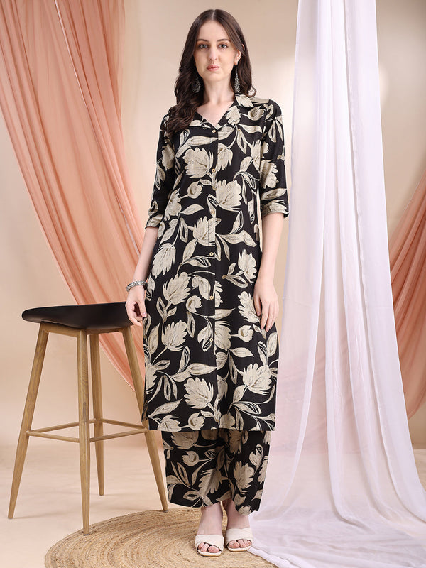 Printed Coordinated Kurta And Palazzo Set, Black - Hiral Fashion