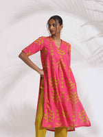 trueBrowns Pink Cotton Print A-line Kurta Set - XS