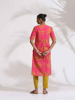 trueBrowns Pink Cotton Print A-line Kurta Set