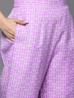 Lavender Floral Printed Sequin Work At Yoke With Round Neck, Three Quarter Sleeves Straight Kurta With Side Slit Paired With Printed Tonal Bottom And Dupatta