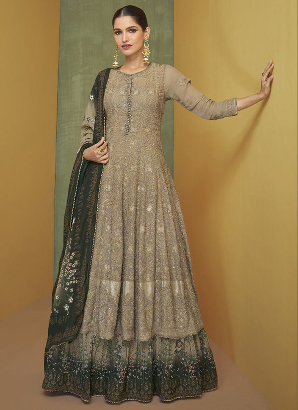 Vegaa Fashion Beige Georgette Embroidery Anarkali Salwar Kameez