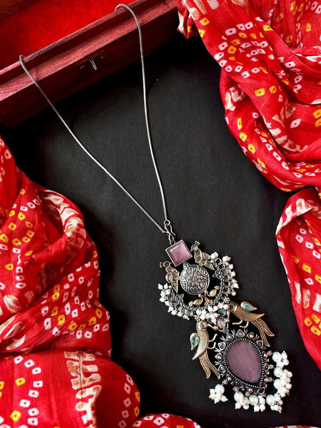 Joban Fashion Onion Pink Brass Monalisa Stone Dual Tone Beaded Pendant Chain NecklaceProduct Details Color: Onion Pink Base Material: Material:...