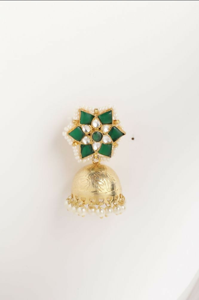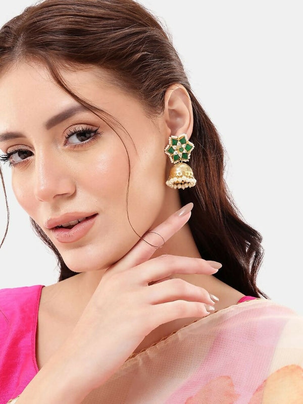 Nuyug 22K Gold Plated Panna Jhumki Earrings