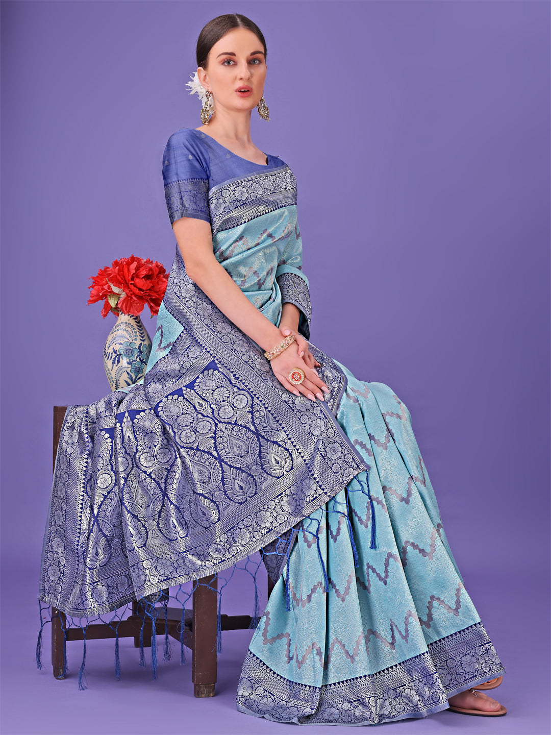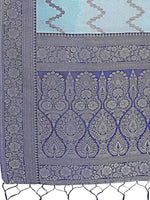 Astita Sky Blue & Green Lichi Silk Saree with Rich Woven Border and Zigzag Pattern - Wedding & Festive Wear - Distacart