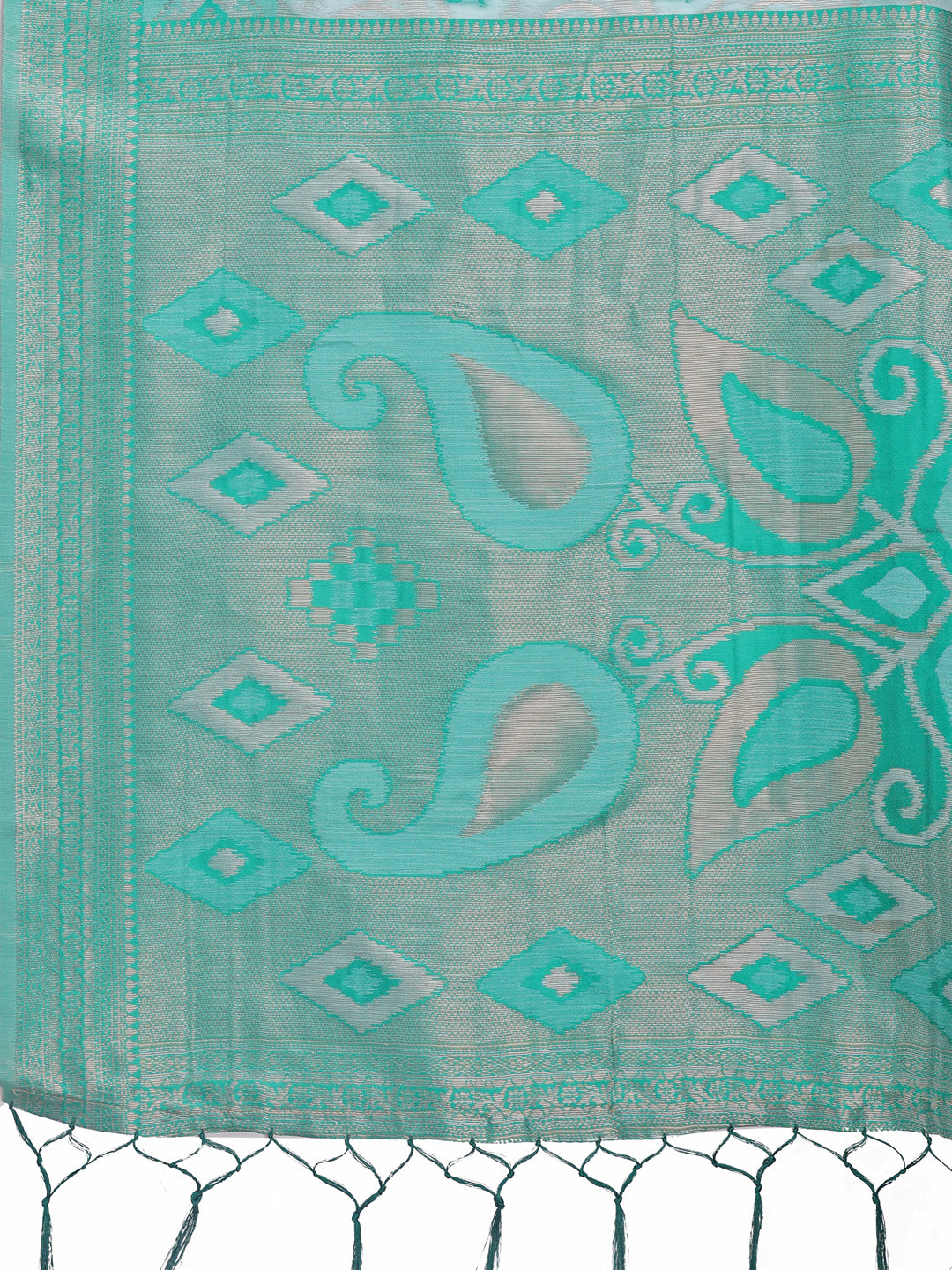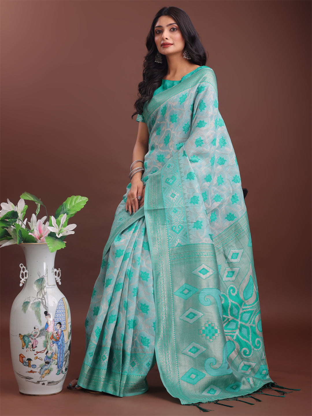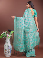 Astita Stylish Green Linen Cotton Saree with Woven Design - Lightweight Elegance for Everyday Grace - Distacart