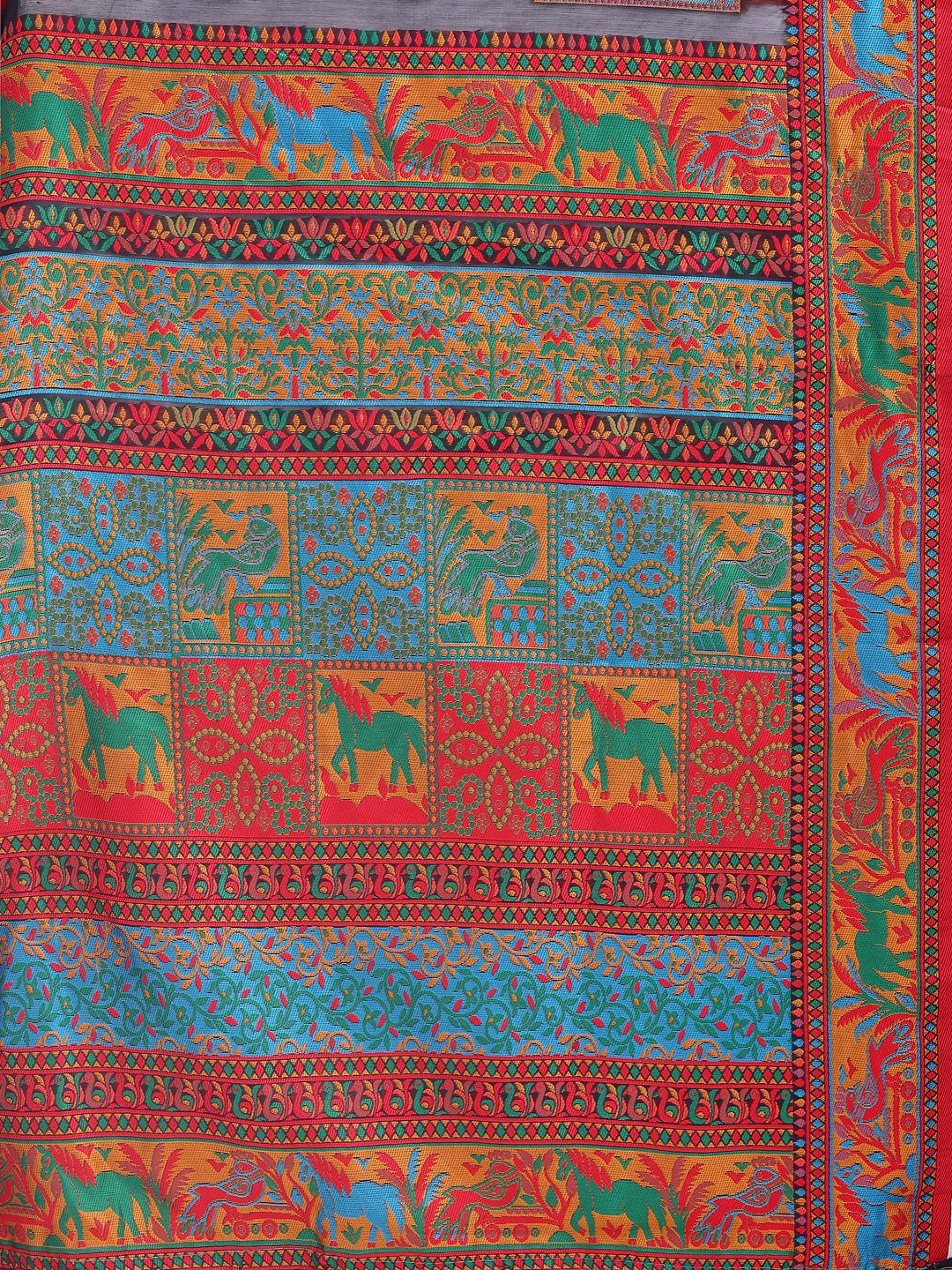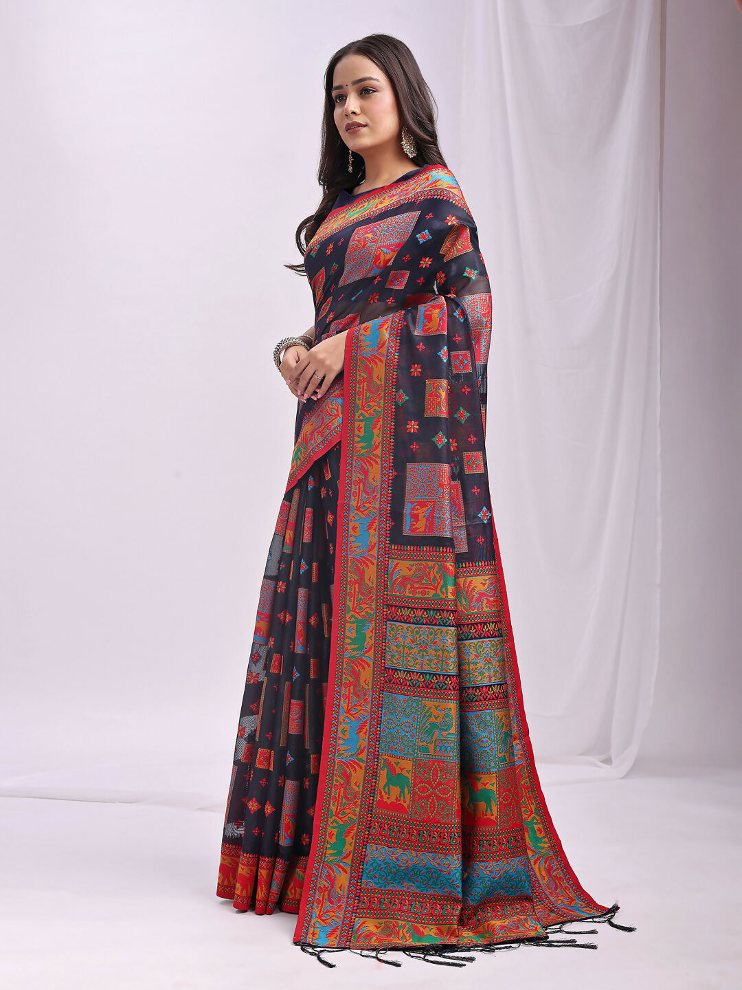 Astita Vastraloom Navy Blue Linen Cotton Saree