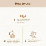 Gently massage the baby’s scalp with your fingertips to create a rich lather.