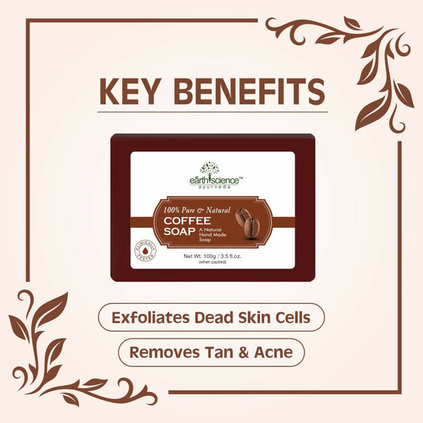 Earth Science Ayurveda Coffee Bath Soap, described as 100% natural and handmade, sounds like an invigorating and exfoliating option for cleansing the skin. Here are some potential benefits of using coffee soap