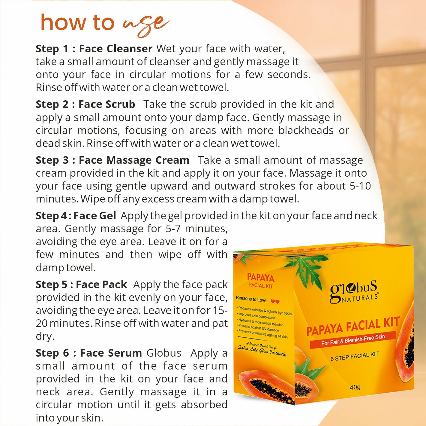 Globus Naturals Papaya Facial Kit For Blemish Free Skin & Anti-Pigmentation, 6 StepsUnlock the secret to radiant, flawless skin with our Papaya...