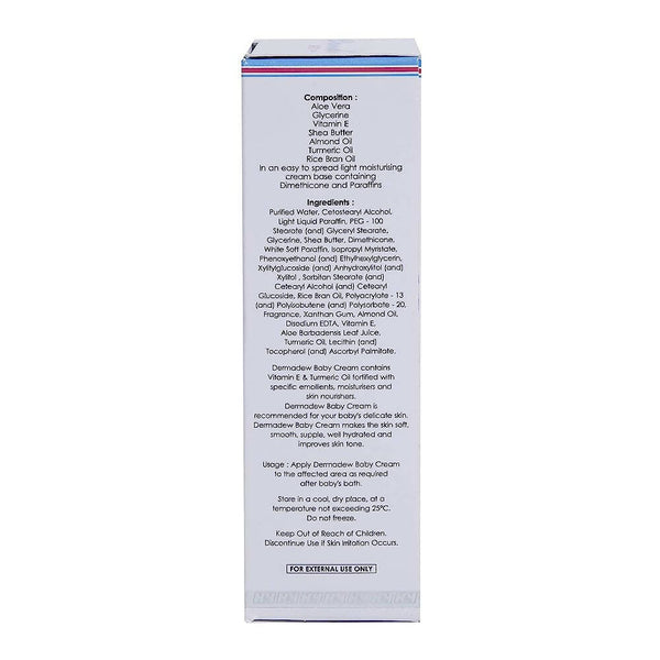 • Dermadew Baby Cream moisturizes, hydrates, and smoothens the baby’s skin. It is recommended for the baby’s delicate skin and improves the skin tone keeping the baby’s skin well hydrated.