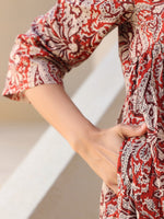 Janasya Dark Cotton Paisley A-Line Top & Bottom Set