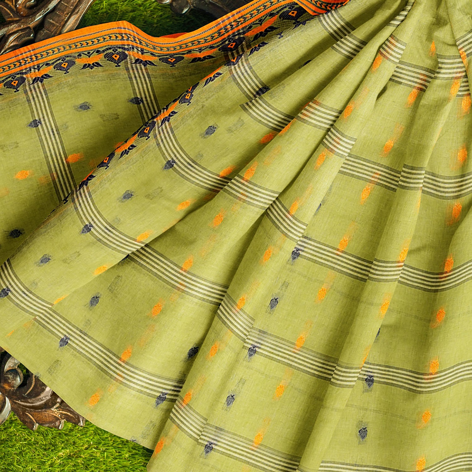 Exclusive Collection 100% Pure Cotton Light Green Tant Saree With Hand Weaving Work