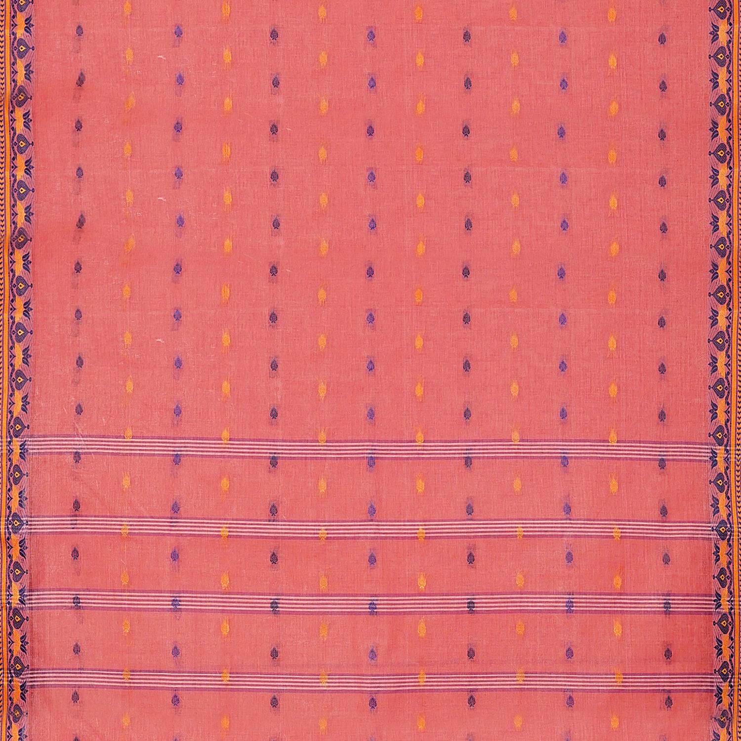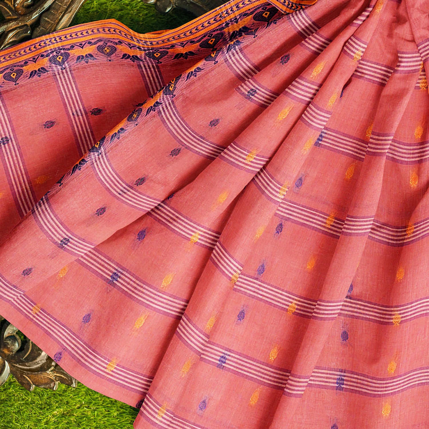 Exclusive Collection 100% Pure Cotton Peach Tant Saree With Hand Weaving Work
