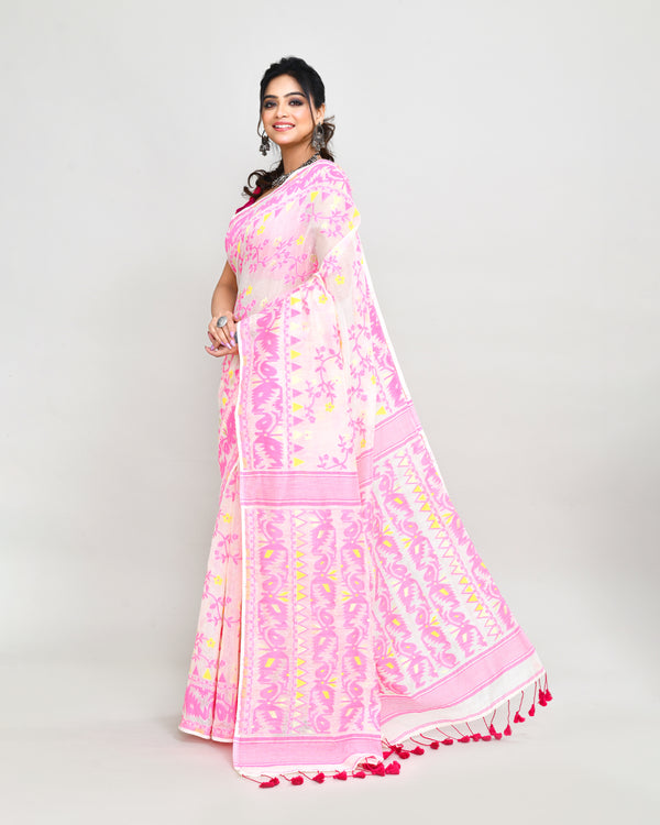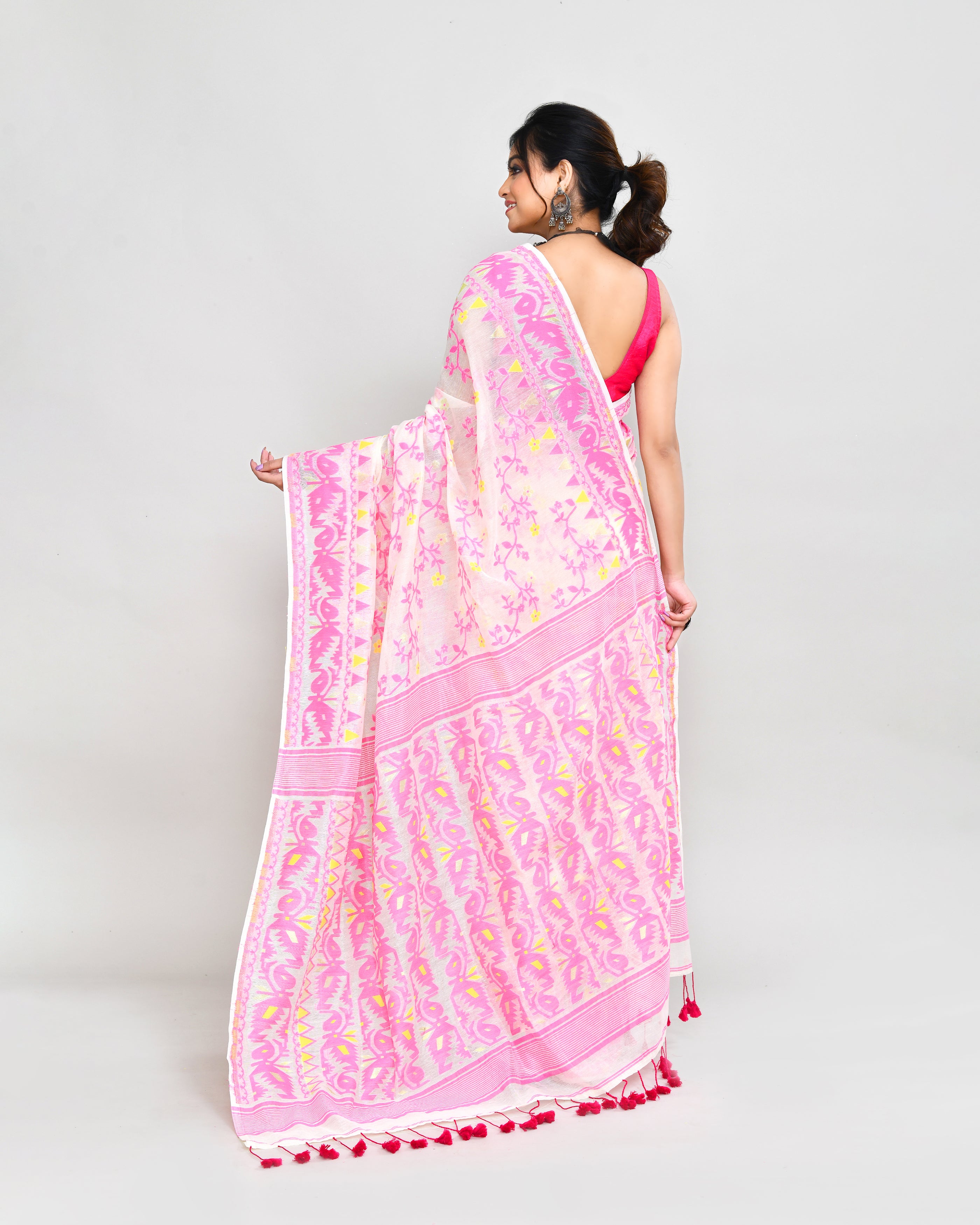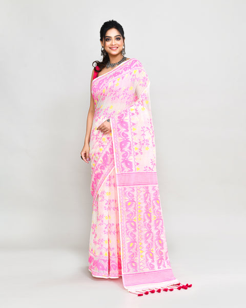 Piyari Fashion Women's Off White Pink Cotton Silk Jamdani SareeAbout the Product:A fresh and vibrant addition to your wardrobes! This saree is craf...