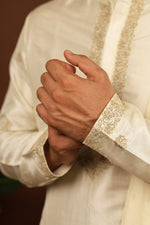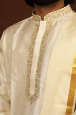 Off White Machine Embroidered Grandeur Pattu Kurta Set by Hilo Design - XS