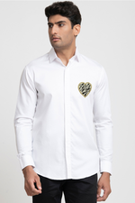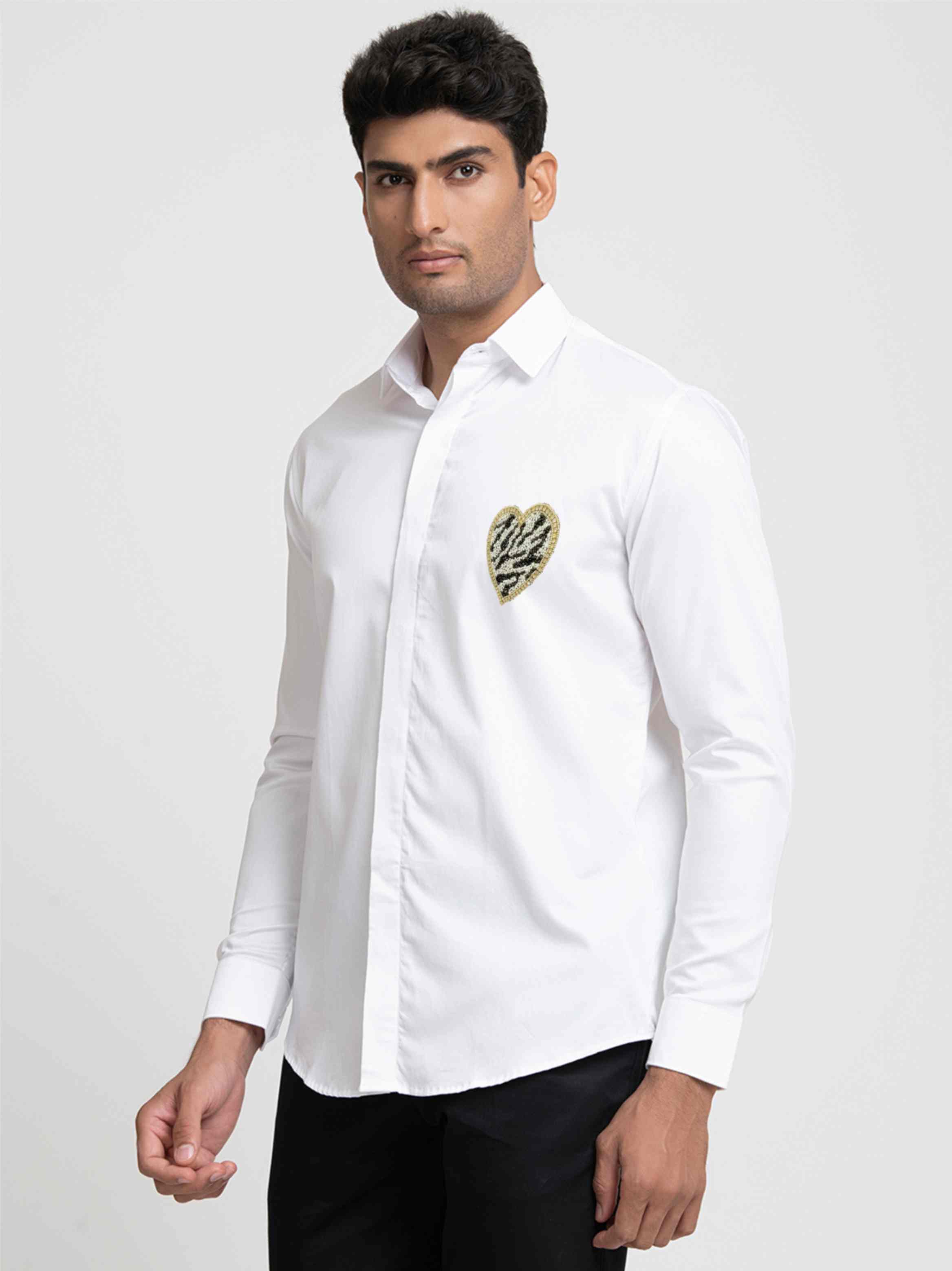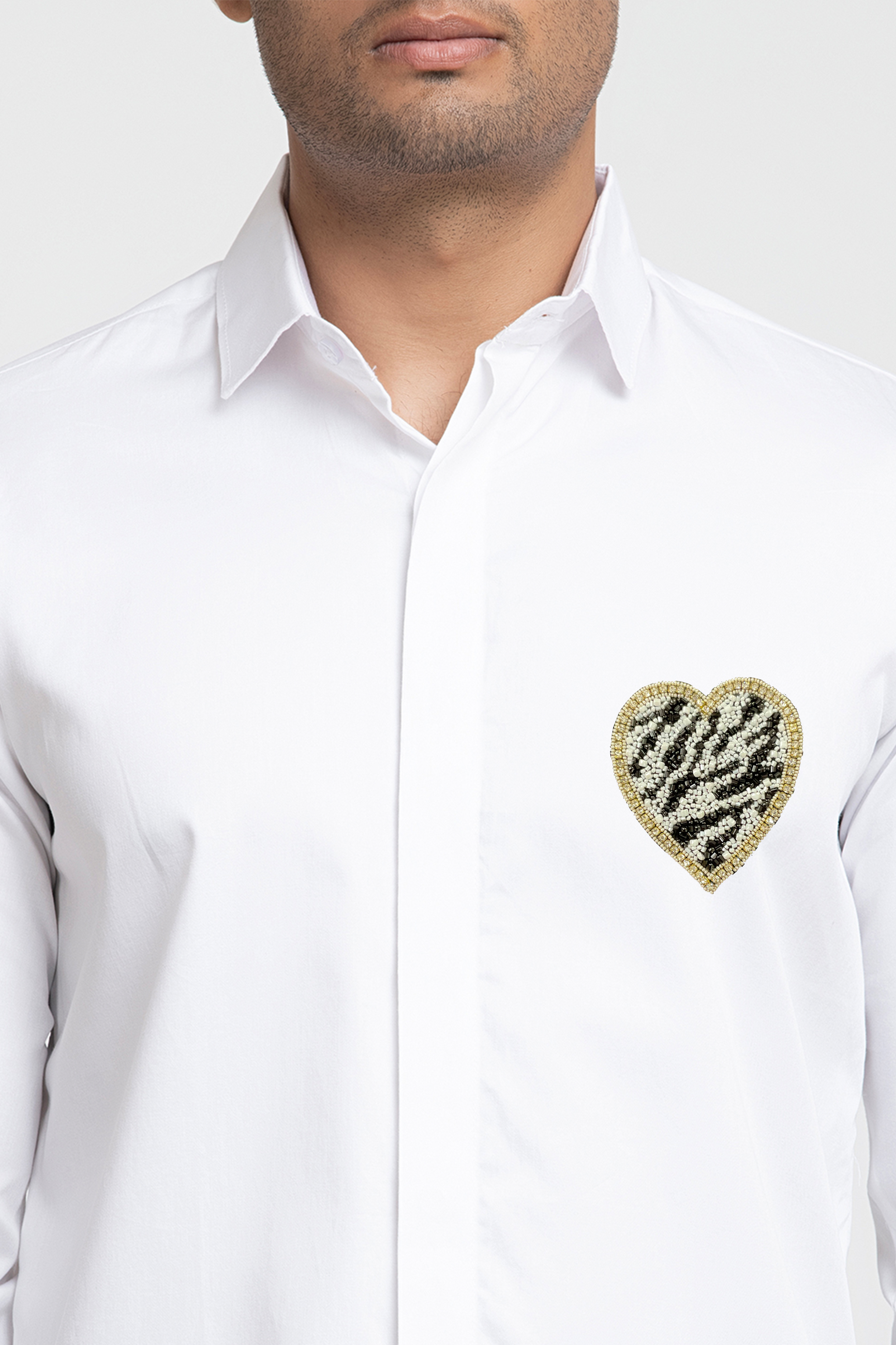 White And Black Heart Shaped Patch Shirt by Hilo Design