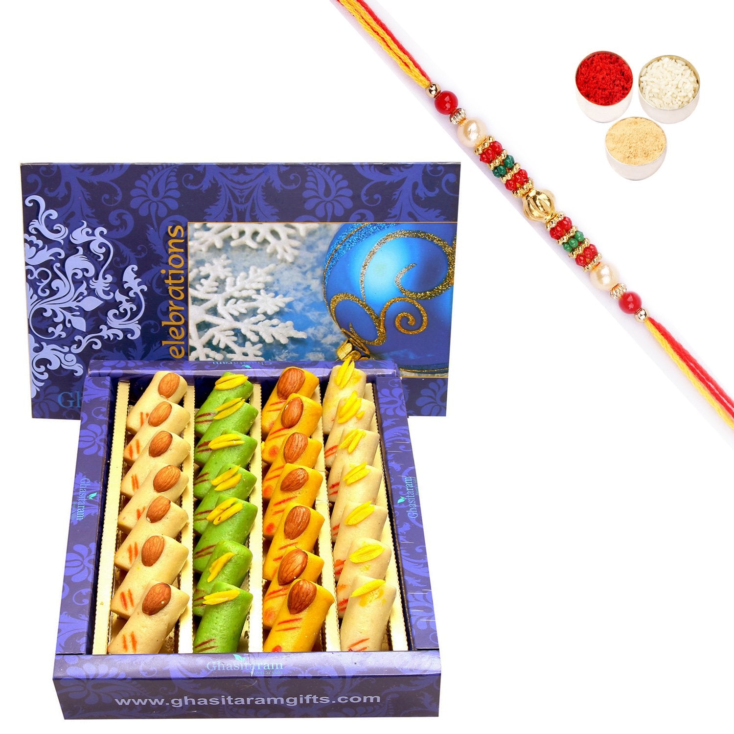 Ghasitaram Assorted Rolls Box With Pearl Beads Rakhi - Distacart
