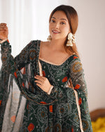 Evanik Green Pure Lightweight Chiffon Bandhej Design Anarkali Pant With Dupatta