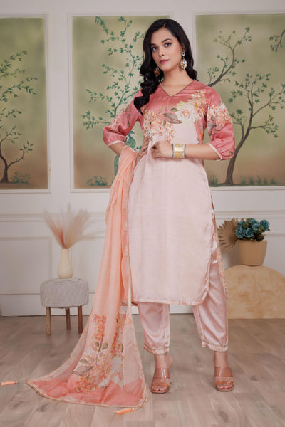 BulBul Tasneem Silk Peach Kurta Set with Dupatta