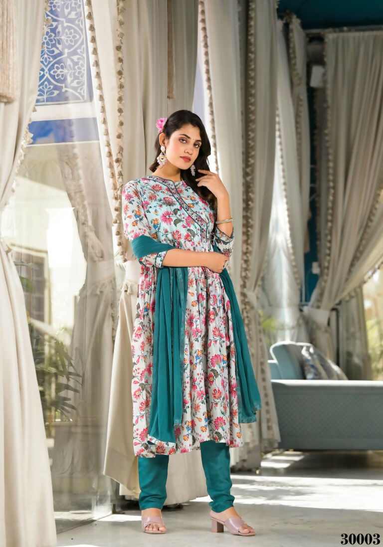 Designer Stylish Mid Night Blue Rubi Silk Stitched Suit With Dupatta - Kiyara - Distacart