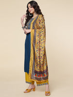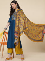 Navy blue and mustard yellow embroidered Kurta with Trousers & dupatta