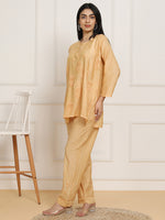 HOUSE OF KARI Floral Embroidered Chikankari Chanderi Silk Straight Kurti with Trousers Product Details Beige embroidered Kurti with Trousers ...