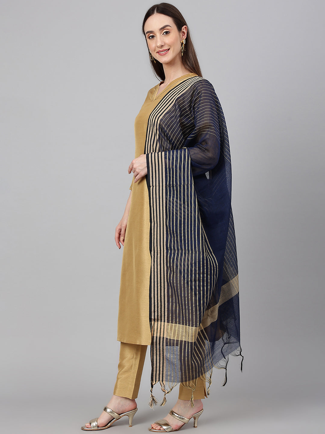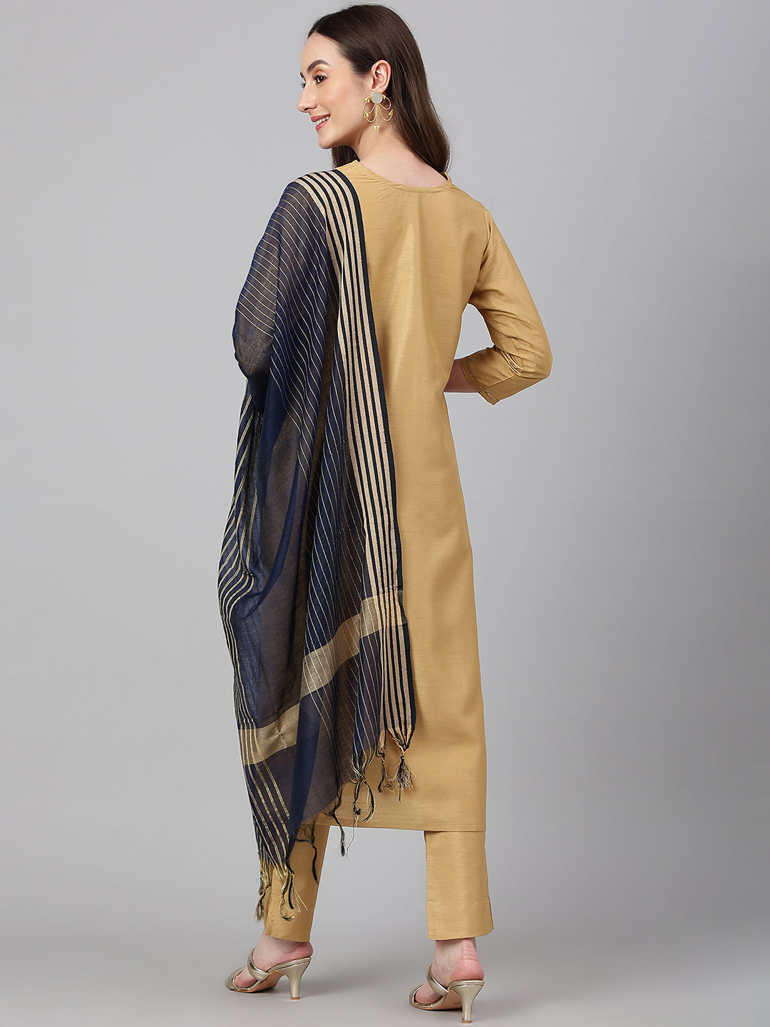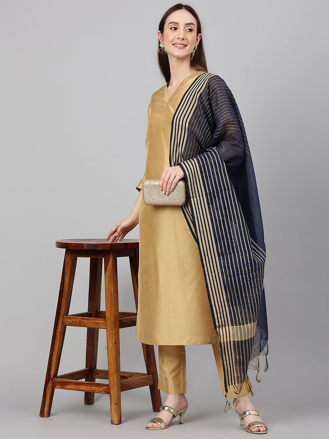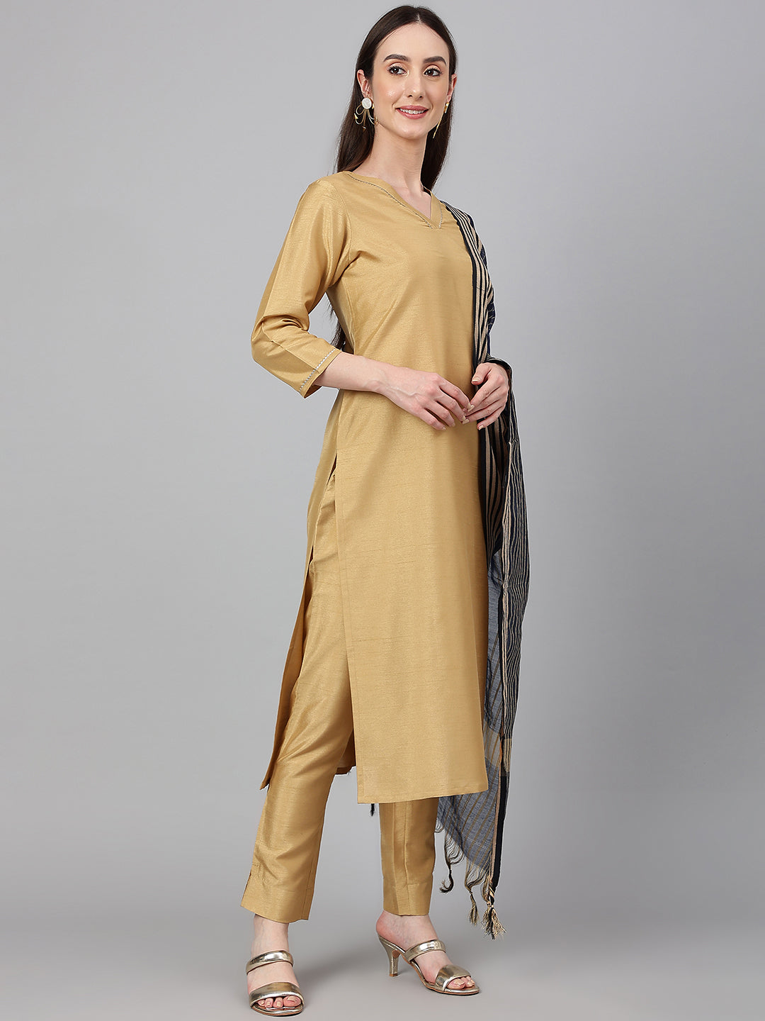 Janasya Women's Gold Crepe Silk Solid Straight Festival Kurta Set