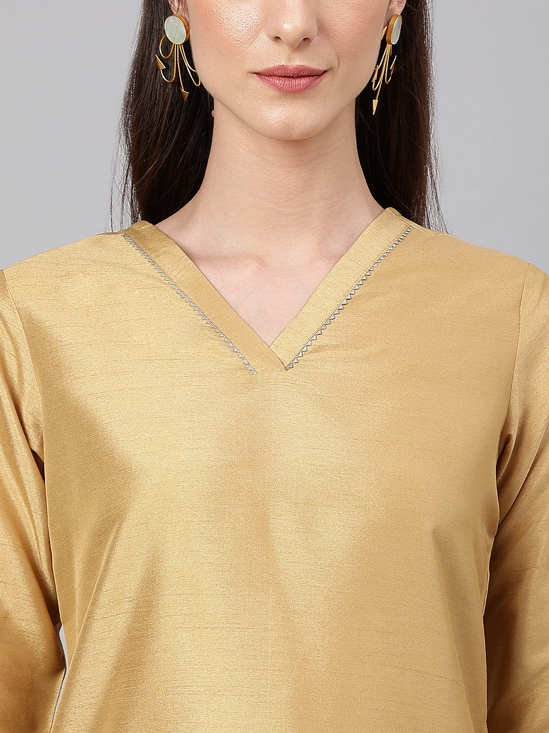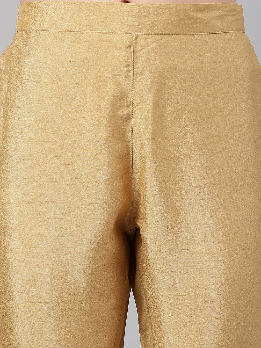 Janasya Women's Gold Crepe Silk Solid Straight Festival Kurta Set Color: Gold Fabric: Crepe Silk Pattern: Solid Occasion: Festival Top Ty...
