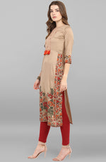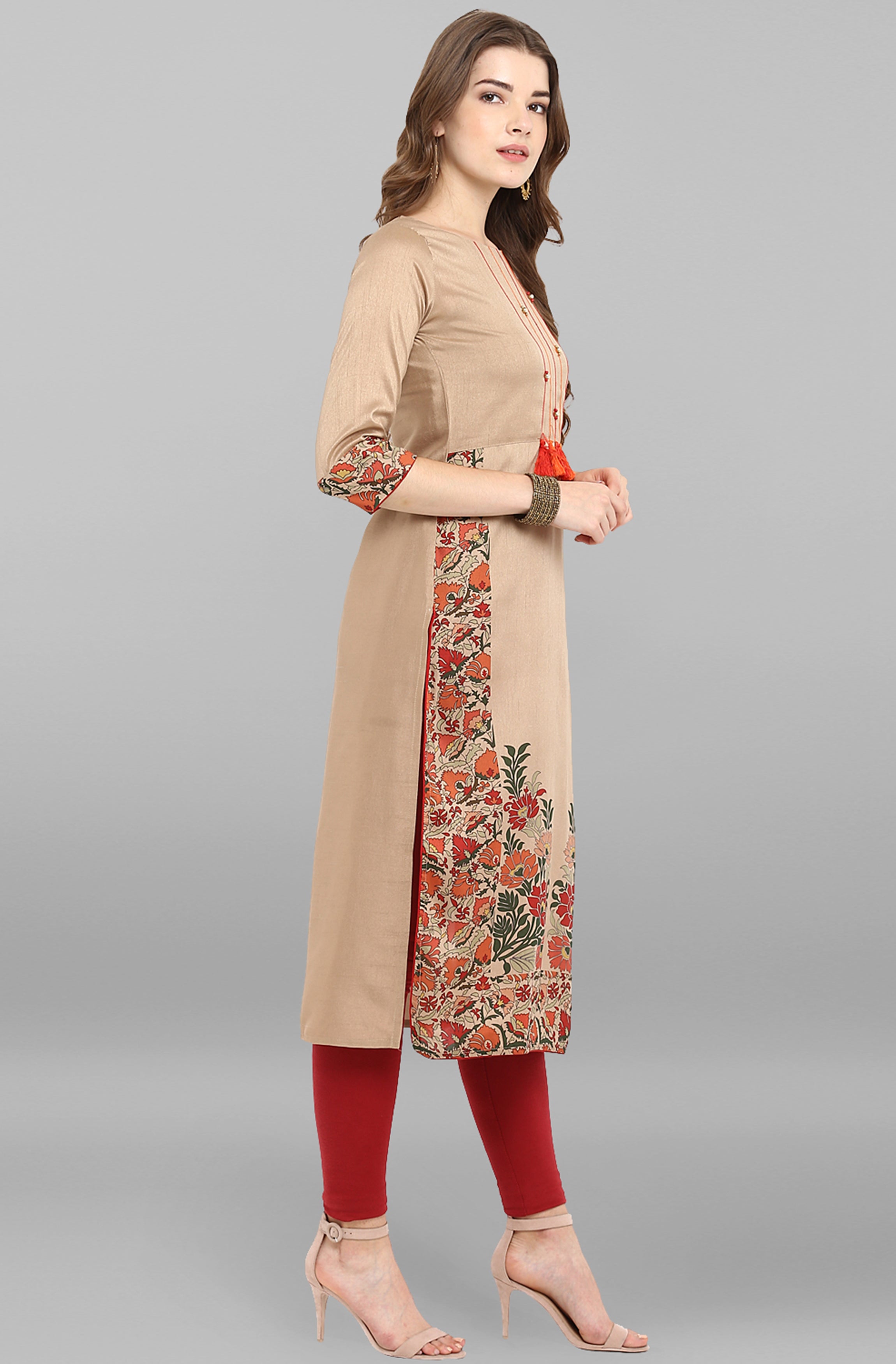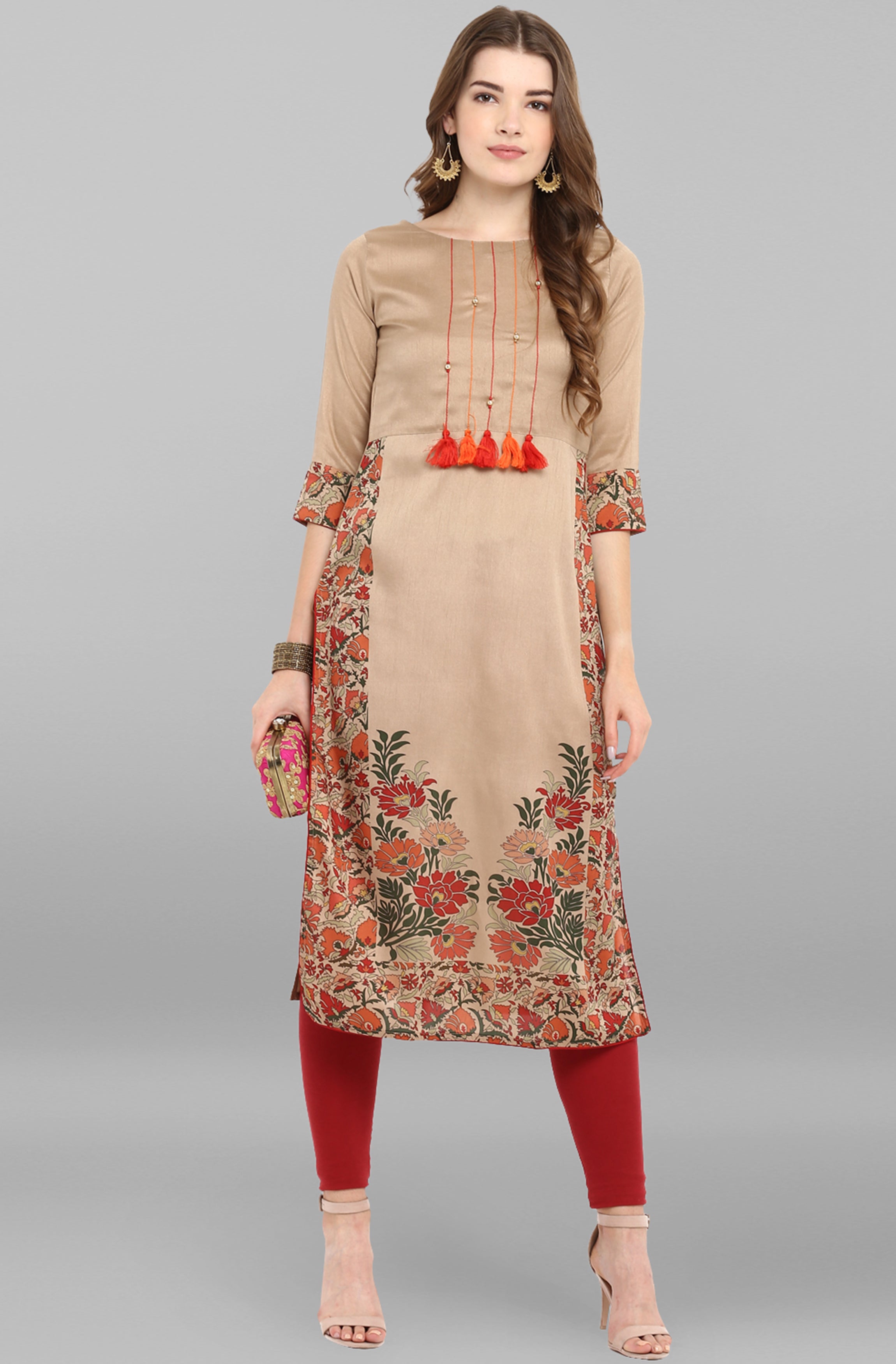 Janasya Women's Light Brown Poly Silk Floral Printed Casual Straight kurta Color: Light Brown Fabric: Poly Silk Work/Pattern: Floral Printed ...