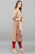 Janasya Women's Light Brown Poly Silk Floral Printed Casual Straight kurta - Distacart