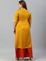 Janasya Women's Mustard Poly Silk Embroidered Festive & Party Straight kurta Color: Mustard Fabric: Poly Silk Work/Pattern: Embroidered ...