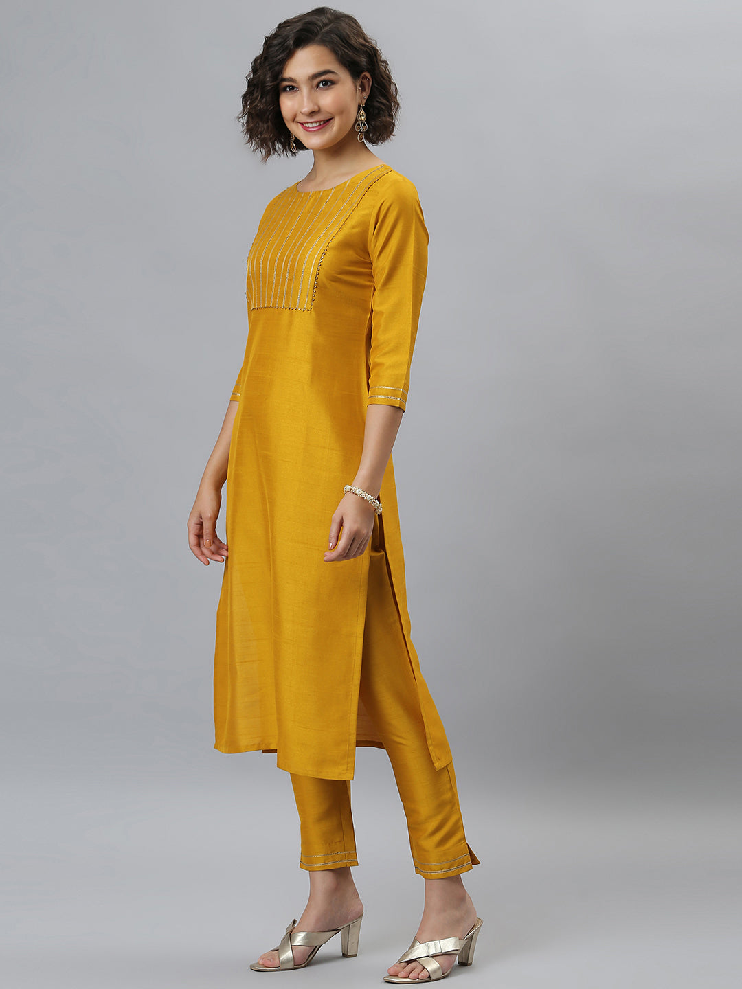 Janasya Women's Mustard Poly Silk Solid Straight Festive Kurta Set Color: Mustard Fabric: Poly Silk Pattern: Solid Occasion: Festive Top ...