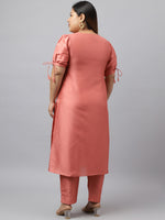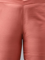 Janasya Women's Peach Poly Silk Straight Festive Kurta Set