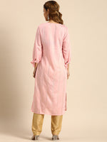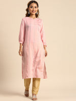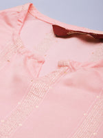 Sangria Women Pink Sequined Jacquard Chanderi Silk Kurta - Distacart