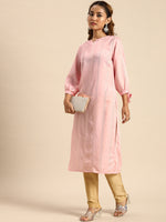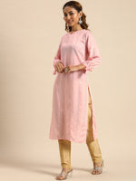Sangria Women Pink Sequined Jacquard Chanderi Silk Kurta - XS