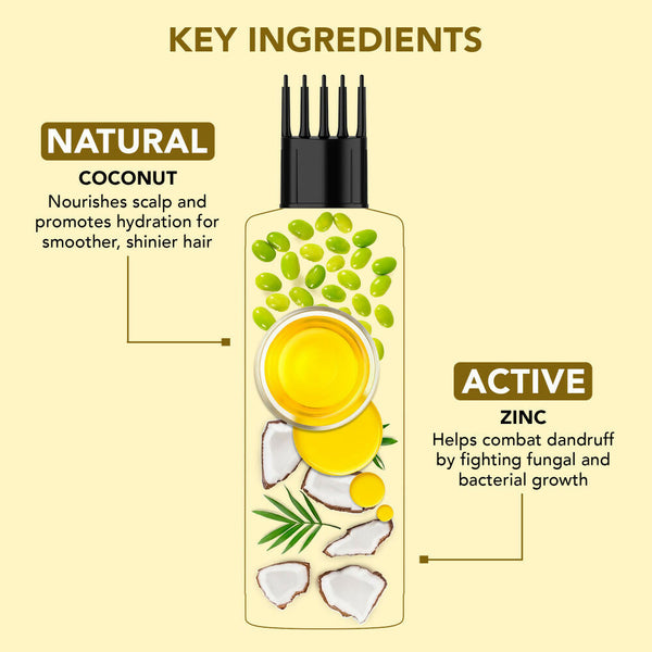 • Hydrate, strengthen, and balance your scalp with Botanic Hearth Coconut & Zinc Hair Oil. This nourishing formula is designed to rejuvenate your scalp while promoting healthier, stronger hair from root to tip. It helps balance excess oil production, reduces flakiness