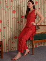 Red & white printed Kurta with Trousers