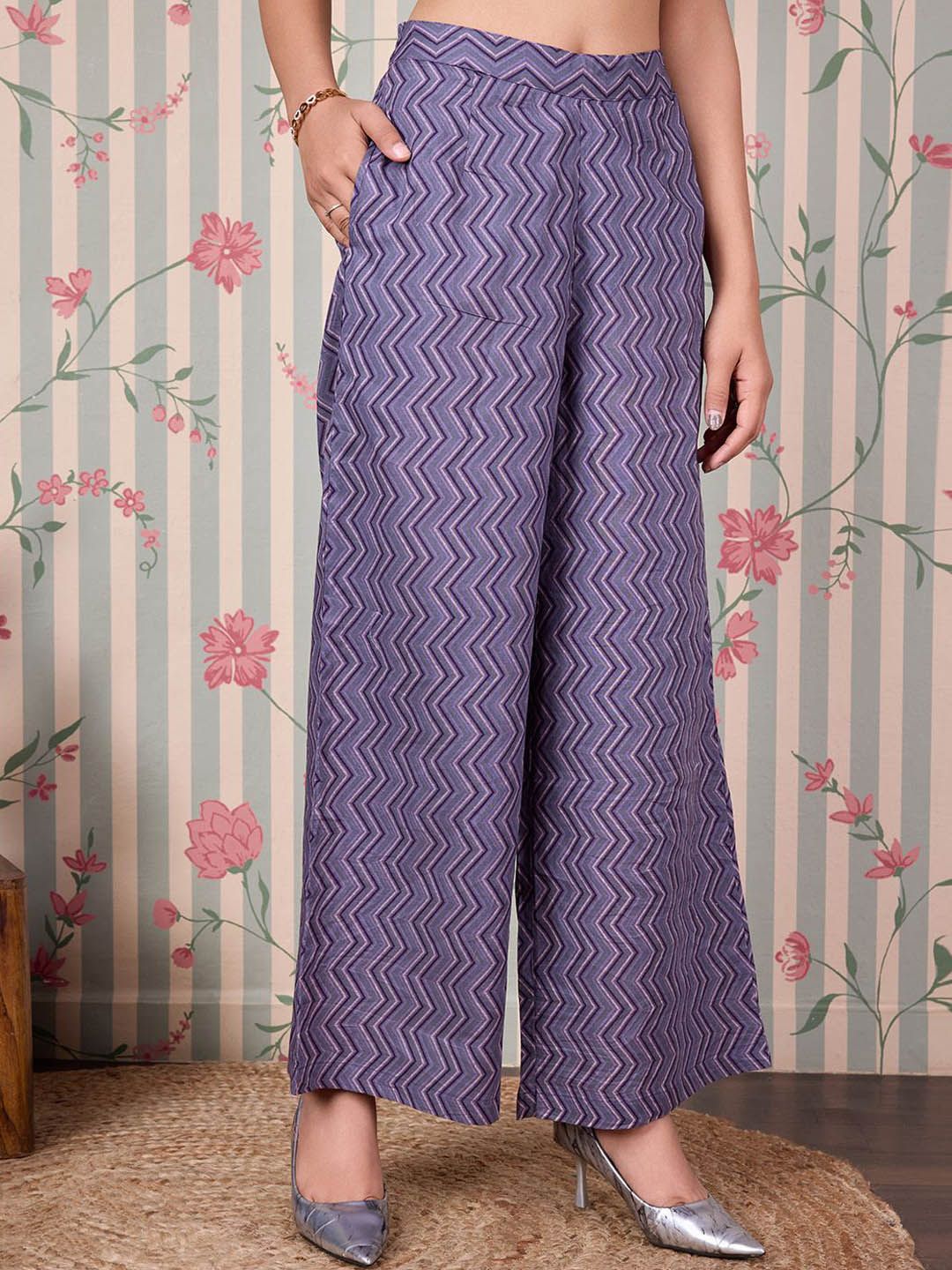 Purple & beige printed Kurta with Trousers
