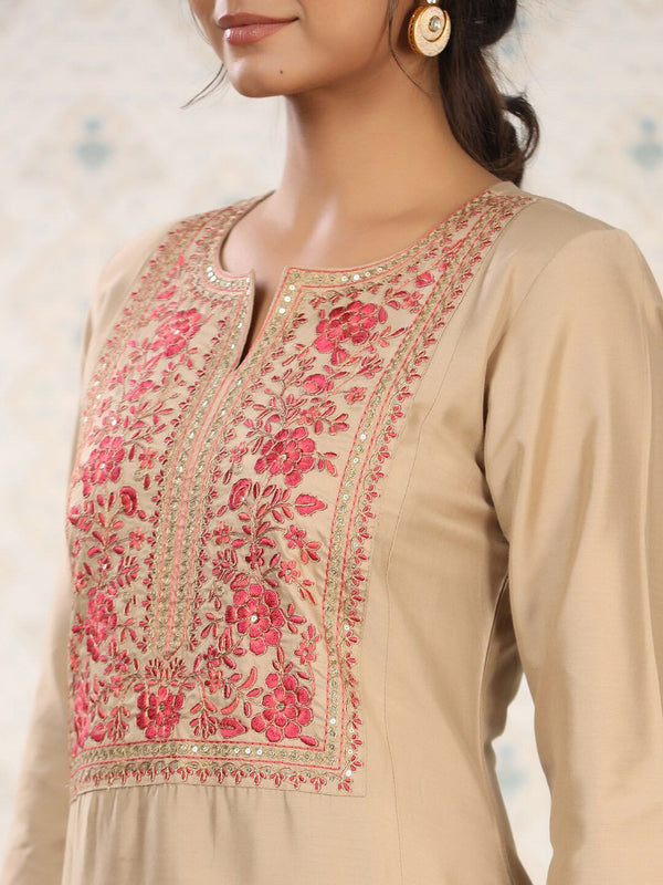 Ode by House of Pataudi Women Floral Yoke Design Thread Work Kurta Product Details Colour: cream-coloured Floral yoke design Round neck ...