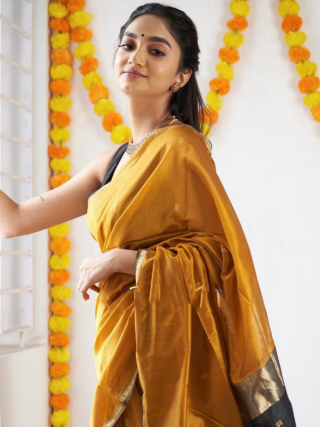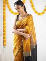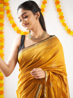Kalini Silk Blend Kanjeevaram Saree Product Details Design Details Yellow kanjeevaram saree Ethnic motifs woven design saree with woven desig...