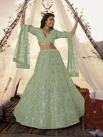 Myra Pista Embroidered Organza bridal Lehenga - Distacart