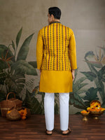 Vastranavya Yellow Exclusive Festival Viscose Silk Thread & Swarovski Embroidered Work Mens Wear Kurta & Koti